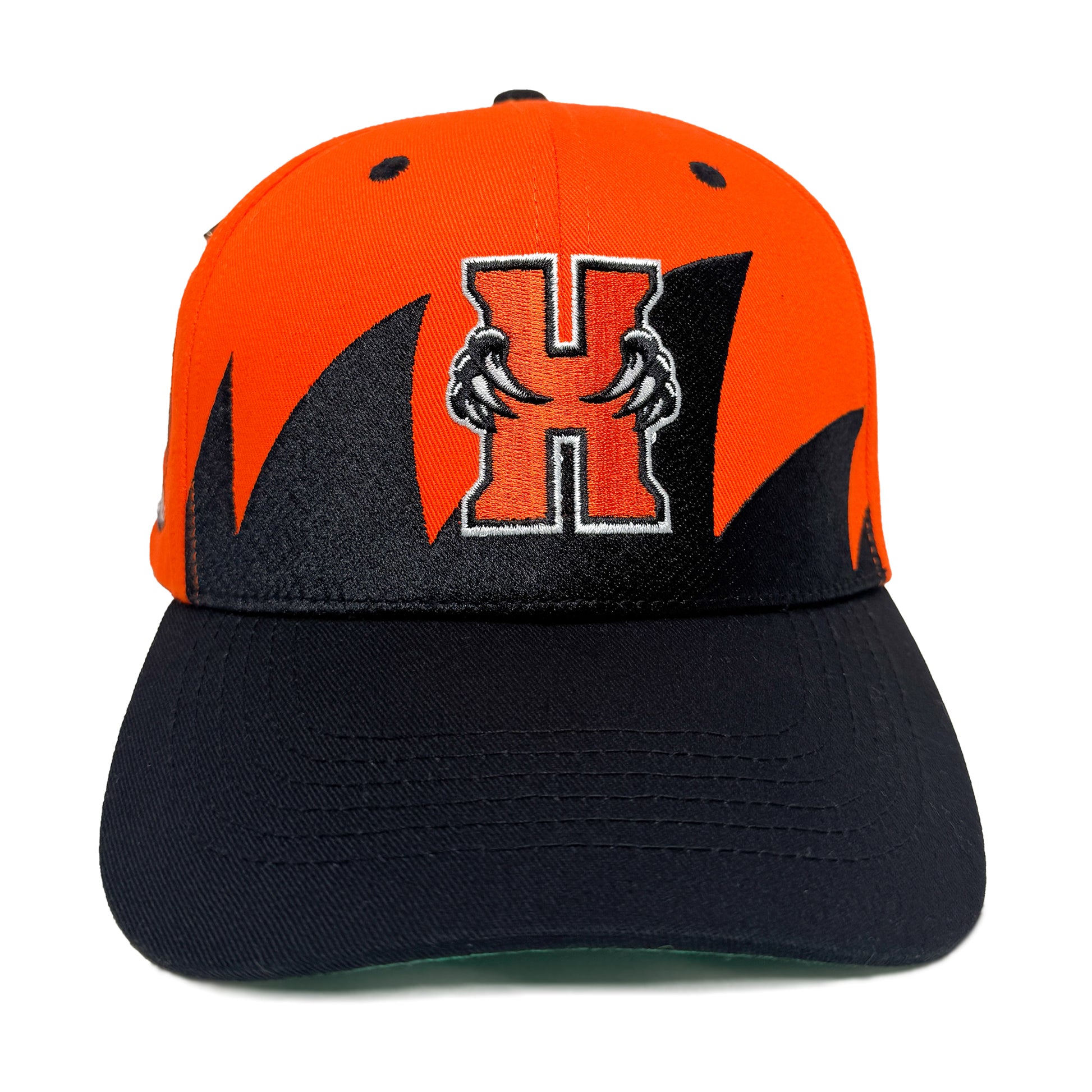 Colorway: Orange/Black Crown; Green Under Brim; Black Visor; Black Eyelets and Button; Black Sweatband